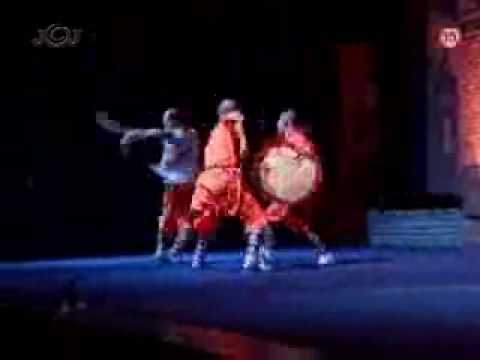 Dych vyrážajúce cvičenia v najvyššom majstrovstve predvádza skupina mníchov a majstrov pod vedením 75-ročného starého majstra kláštora.
