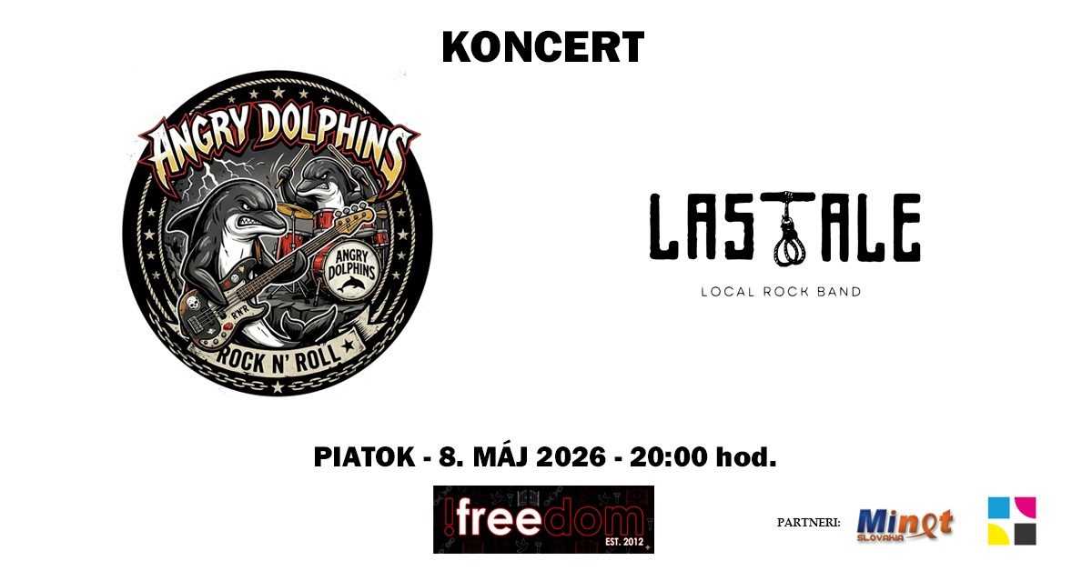 po skvelom januárovom koncerte, si musíme dať repete. Pozývame všetkých milovníkov slovenskej tvorby, a žiadnej inej, do !freedomu  na koncert dvoch hudobných skupín. Angry Dolphins z Michaloviec a Last Tale z Košíc, ktorí prídu do Michaloviec a prinesú nám opäť parádny hudobný zážitok. Angry Dolphins dokonca prídu s vynoveným playlistom.