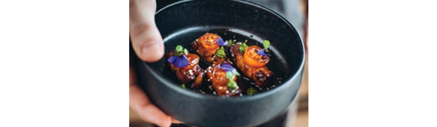 • Bravčový bôčik sous vide,  sweet and sour omačka, kumquat