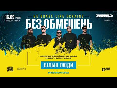16. septembra v Bratislave sa uskutoční charitatívny koncert ukrajinskej skupiny „BEZ OBMEŽEŇ“. Toto je už druhá časť veľkého koncertného turné na podporu Ukrajiny! „BEZ OBMEDZENIA“ je jednou z najpopulárnejších rockových kapiel na Ukrajine. Chalani zbierajú tisíce sál v mestách a milióny počúvaní na hudobných platformách. Víťazi hudobných cien: M1 Music Awards, Golden Firebird. Skladby kapely sa okamžite stávajú hitmi a obsadzujú prvé miesta v hitparádach. Medzi nimi sú: «Зорі запалали», «Тону», «Героям», «Без неї ніяк», «Листопад», «Вільні люди»