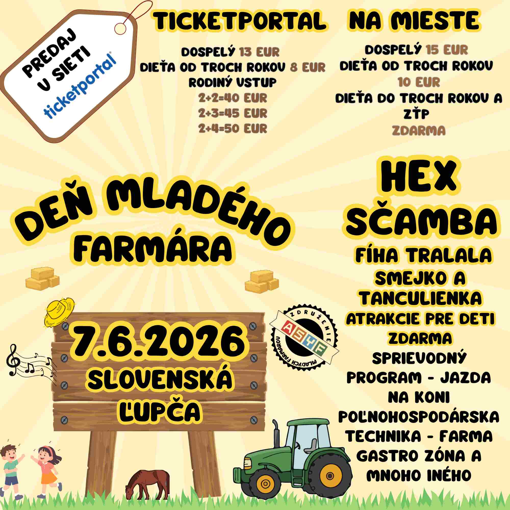 Príďte zažiť jedinečný deň plný poľnohospodárstva, zvierat a inšpirácie od mladých farmárov! Čaká vás pestrý program, ukážky techniky, množstvo hier a atrakcií pre deti aj dospelých.