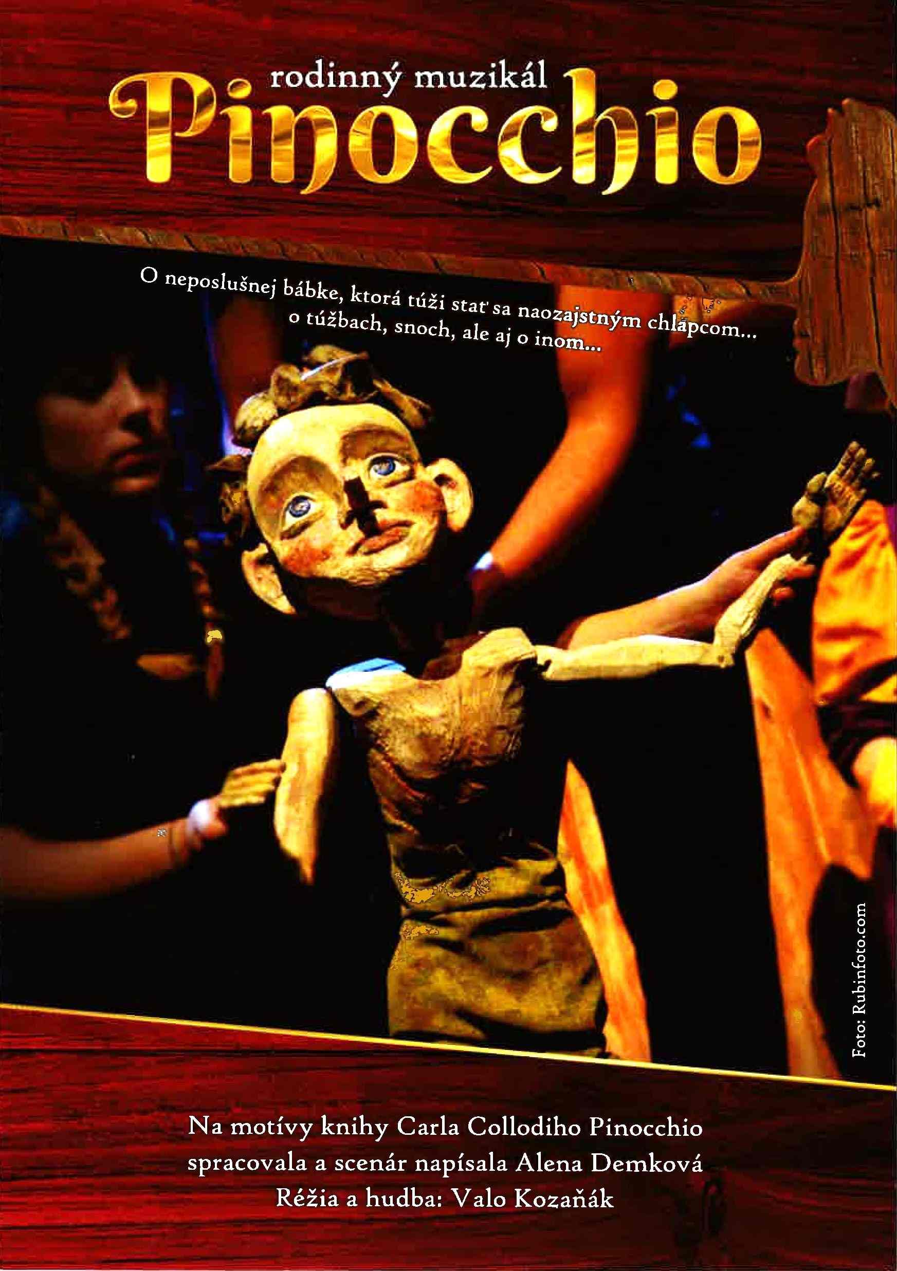 Pinocchio je rodinný muzikál o neposlušnej bábke, ktorá sa túži stať naozajstným chlapcom... o túžbach, snoch, ale aj o inom...