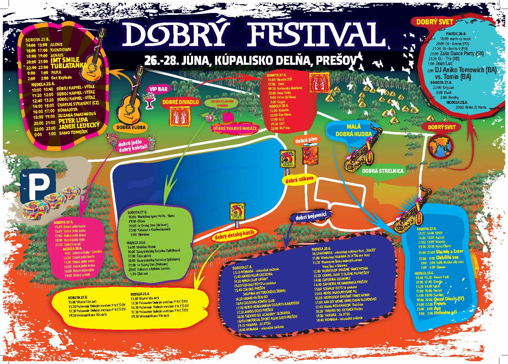 Dobrá hudba: JANEK LEDECKÝ, IMT SMILE, TUBLATANKA, ZUZANA SMATANOVÁ, PETER LIPA, PARA, KOMAJOTA, SAMUEL TOMEČEK, JANAIS, RAINDOWN, GET EXPLODE, CHARLIE STRAIGHT a víťazi Súboja kapiel. MALÁ DOBRÁ HUDBA - talianska okálová formácia QUASI DIESIS (IT), HELENINE OČI, CHIKILIKI TUA, MATELO, AYA, IGITOT, KESAJ CHAVE, DALLA MATINA ALLA SERA, GIONNO, TRECHA, SUN LIPS, DOBRE DIVADLO - DAD, BABADLO, DJZ, SDT, MAF TRIO, Divadlo Zus, Prešovský Dixieland, Andy Belej, Peter Bič Band, Gagas.