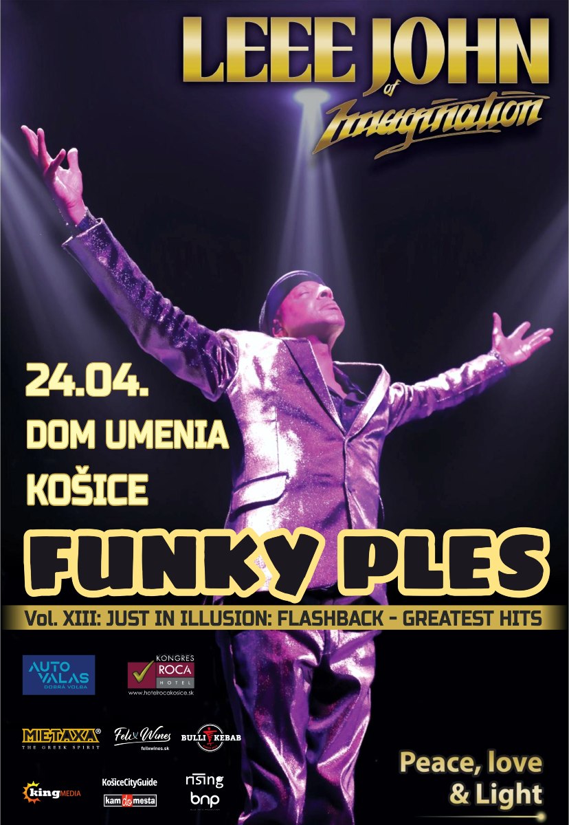 Legendárna Košická funky párty je späť! Tanečno-hudobné podujatie roka prináša už 14 rokov to najlepšie z funky, oldies a disco tanečnej scény a to hneď na dvoch tanečných pódiách. Opäť vám predstavíme naživo nielen svetové hviezdy, ale aj kvalitných lokálnych DJs, ktorý pre vás majú nachystané more kvalitnej tanečnej hudby. Zo Spojeného kráľovstva prichádza žijúca legenda, megastar a líder slávnej kapely IMAGINATION – jedinečný spevák a šoumen LEEE JOHN, ktorý vystúpi naživo v sprievode svojej skupiny. Ich top svetové hity ako Just In Illusion, Music and Lights alebo Body Talk  sa umiestnili na popredných miestach svetových rebríčkov. V osemdesiatych a deväťdesiatych rokoch získala skupina obrovský medzinárodný úspech vrátane 4 platinových a 9 zlatých platní. Skupina IMAGINATION bola známa svojím výnimočným zvukom 80. rokov a na našom území nevystupovala takmer 40 rokov! Okrem nich privítame aj kvalitných domácich hudobníkov, ktorí bude prekvapením večera. Predstaví sa aj plejáda kvalitných slovenských DJ-ov - napríklad FUNKY MONKEYS DJS, INCOGNITO DJ a v Malej sále Domu umenia pre vás pripraví skvelú oldies videodiskotéku DJ PETER HUSÁK. Tešiť sa môžete aj na sprievodný program v podaní tanečných skupín aj na polnočnú tombolu o hodnotné ceny a to všetko vám úžasne okomentuje moderátor RIŠO HERRGOTT.
