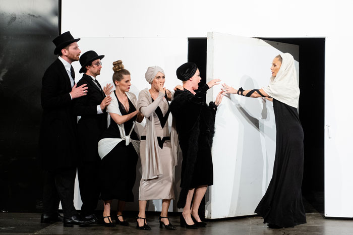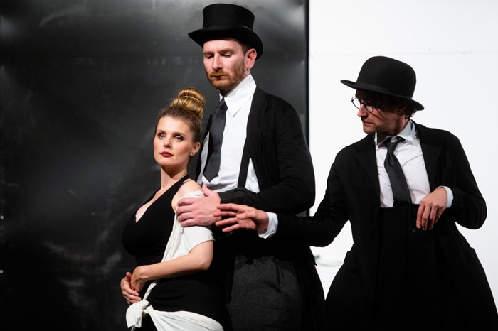 Režisér Roman Polák sa pre inscenovanie tejto hry a jej komickej grotesknosti inšpiroval v ére nemého filmu – čiernobiela scéna a kostýmy sú podčiarknuté hudobnou improvizáciou klaviristu, ktorý svojou hudbou bude miestami manipulovať aj činnosťou postáv na javisku. Mnohokrát aj rýchlosť ich pohybu bude závisieť od jeho klavírnej improvizácie :)