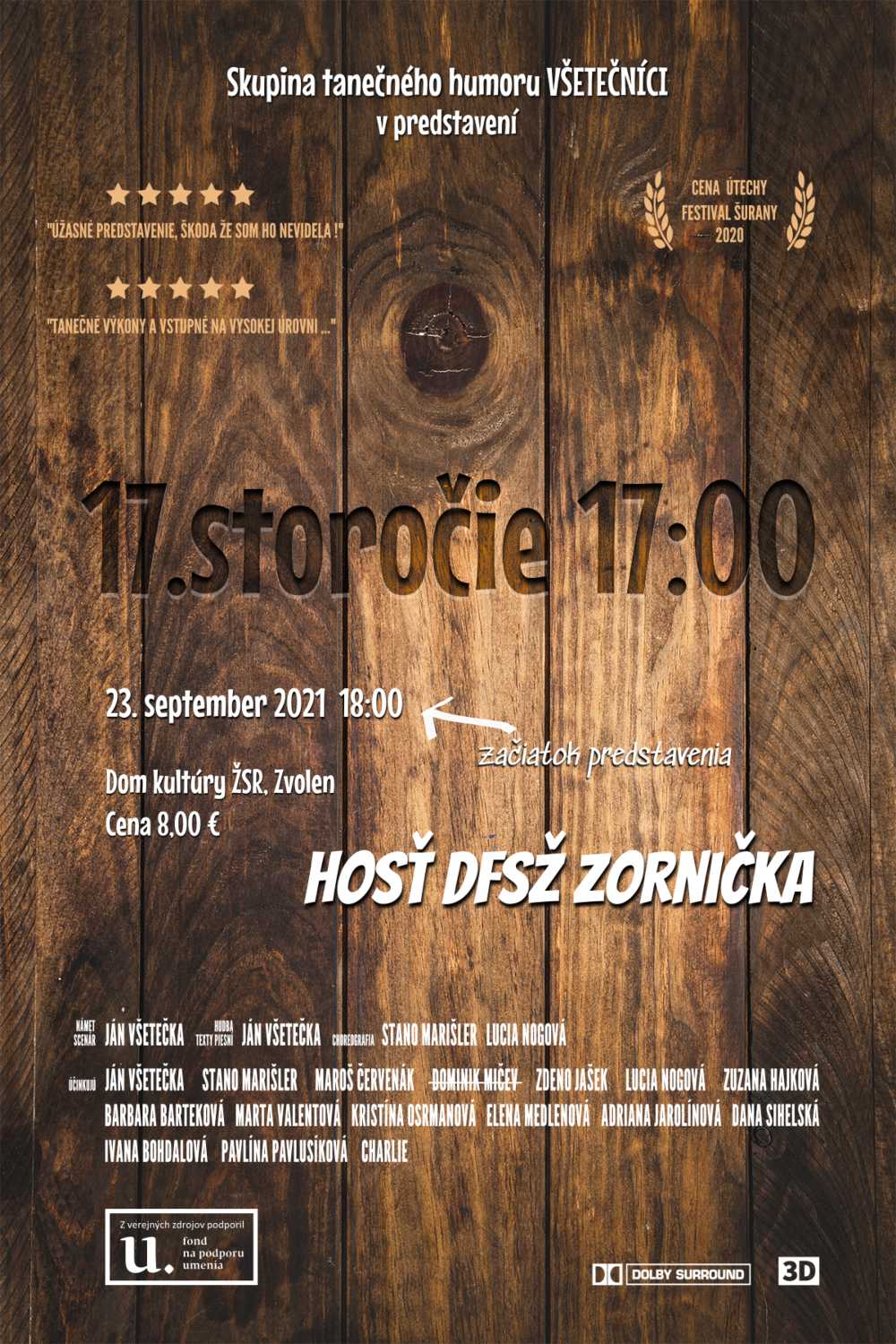 Nový program Skupiny tanečného humoru Všetečníci je rozdelený do deviatich príbehov odohrávajúcich sa v 17. storočí. Deväť príbehov, ktoré majú spoločnú jednu vec. O akú vec ide necháme na dôvtip cteného diváka. Diváci, u ktorých k dovtípeniu nedošlo a sú zvedaví čo spoločné spomínané príbehy majú, nech telefonicky kontaktujú nášho umeleckého vedúceho. Najlepšie okolo 17-ej. Predstavenie z verejných zdrojov podporil Fond na podporu umenia.