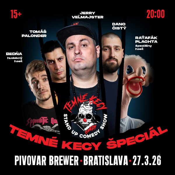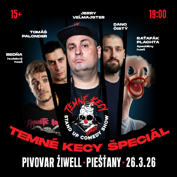 26.3. 2026 štvrtok Piešťany o 19:00 hod , Pivovar ŽiWELL, Temné kecy špeciál , účinkujú Veľmajster Jerry, Tomáš Palonder, Dano Čistý, hudobný hosť Bedňa a špeci hosť Raťafák Plachta :)