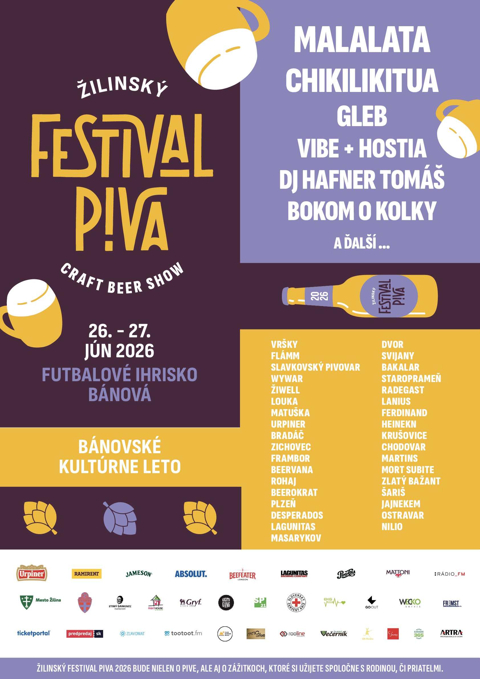 Žilinský Festival Piva 2026 sa začína 26.6.2025 a končí - 27.6.2026